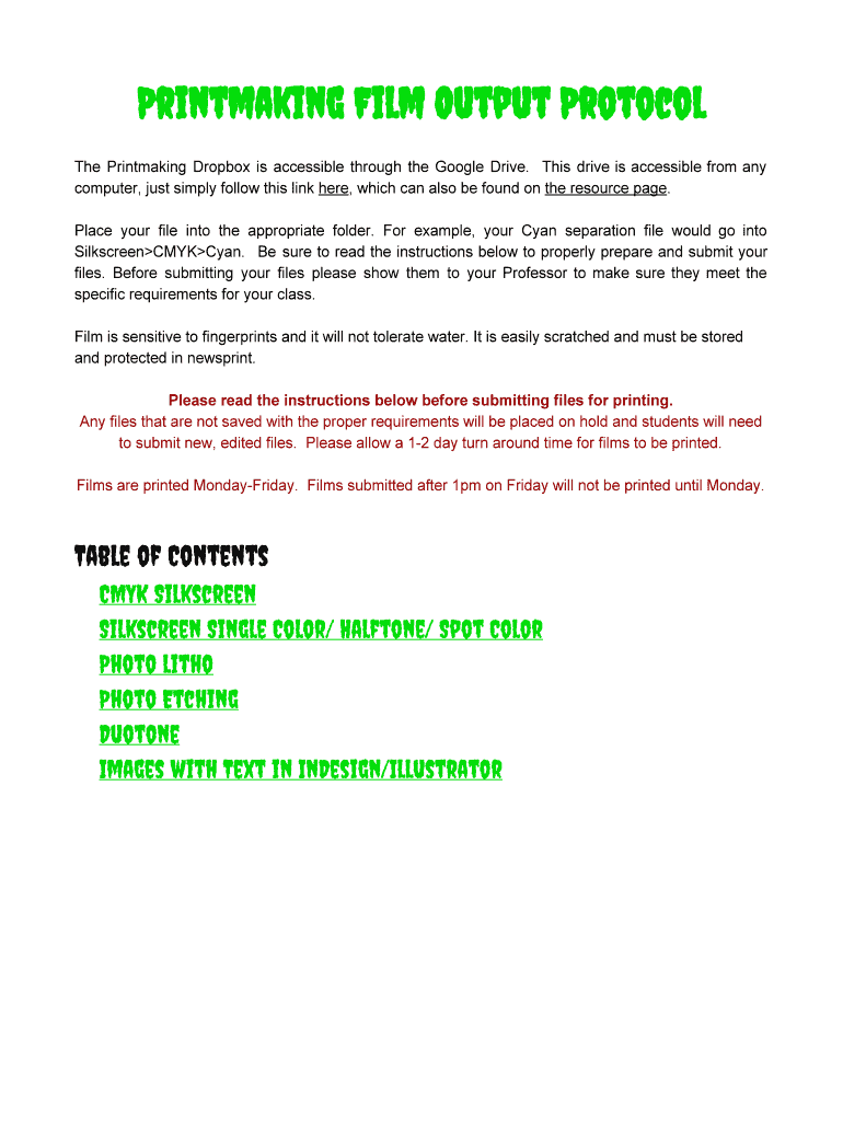Get the free Printmaking Film Output Protocol - bresourcesbbparsonsbbedub