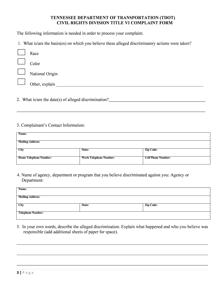 Get the free BTitleb VI Complaint bFormb - State of Tennessee - tn