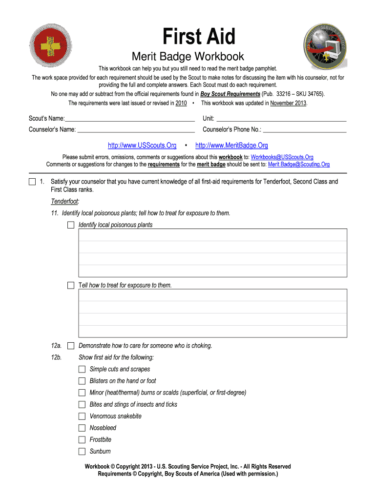 This workbook can help you, but you still need to read the merit badge pamphlet. ... No one may add or subtract from the official requirements found in Boy Scout Requirements (Pub. ... Explain the