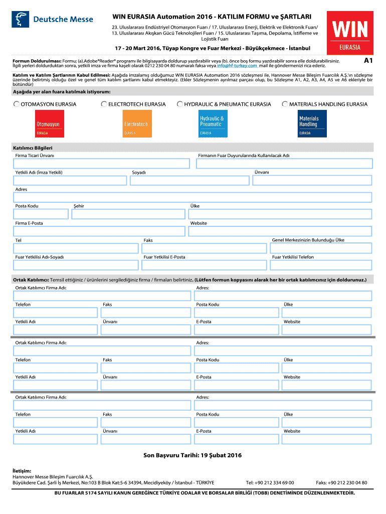WIN EURASIA Automation, 17 – 20 Mart 2016 — Minaret i Form Page 4 of 6. Lt fen +90 212 334 69 34 numeral? FAFSA g Deniz. A4 1.