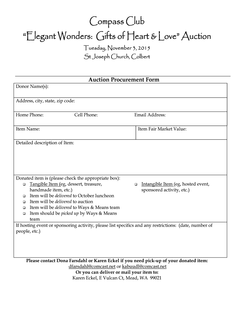 Fill out your auctionprocurementform 11-15docx - spokanecompassclub online with pdfFiller!