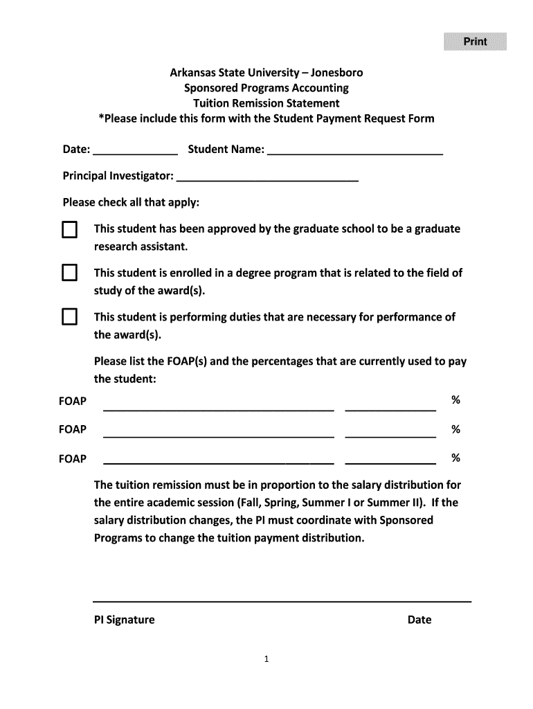 Get the free BTuitionb Remission bFormb - Arkansas State University - astate