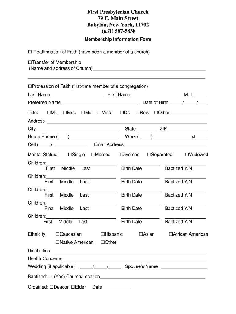 Get the free New Member Information - First Presbyterian Church Of Babylon - 1stpresbabylon