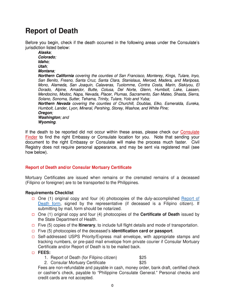 Get the free Before you begin, check if the death occurred in the following areas under the Consu...