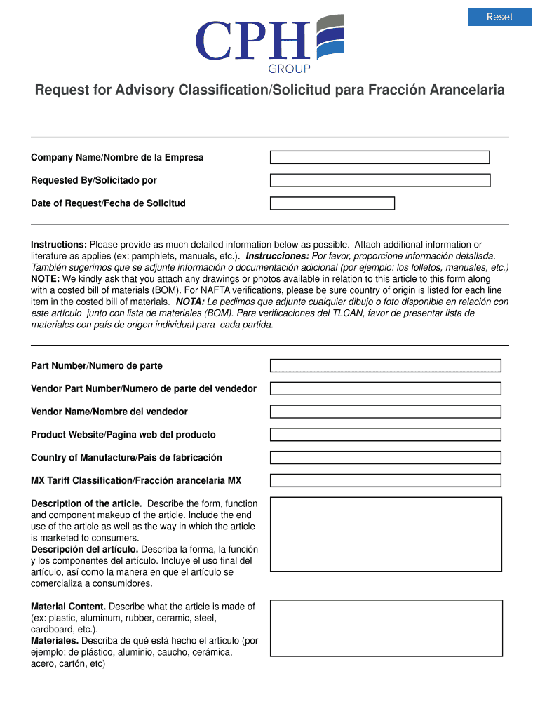 Get the free Request for Advisory Classification/Solicitud para ... - CPH Group