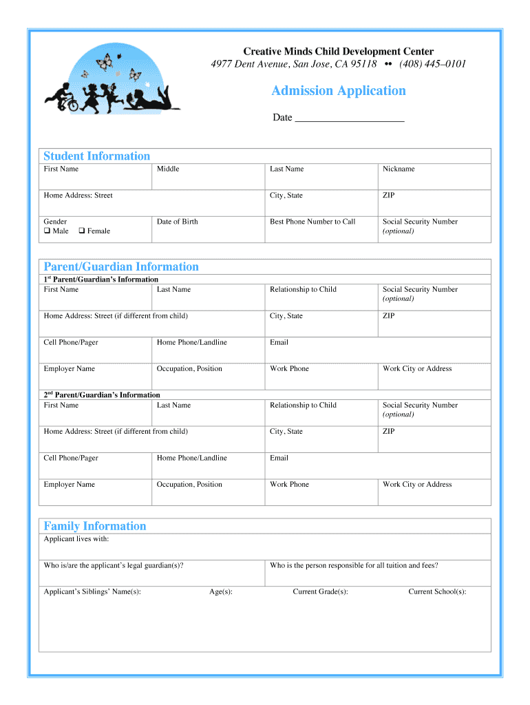 Get the free Admission application 8-20-15 - Creativeminds - creativemindscdc