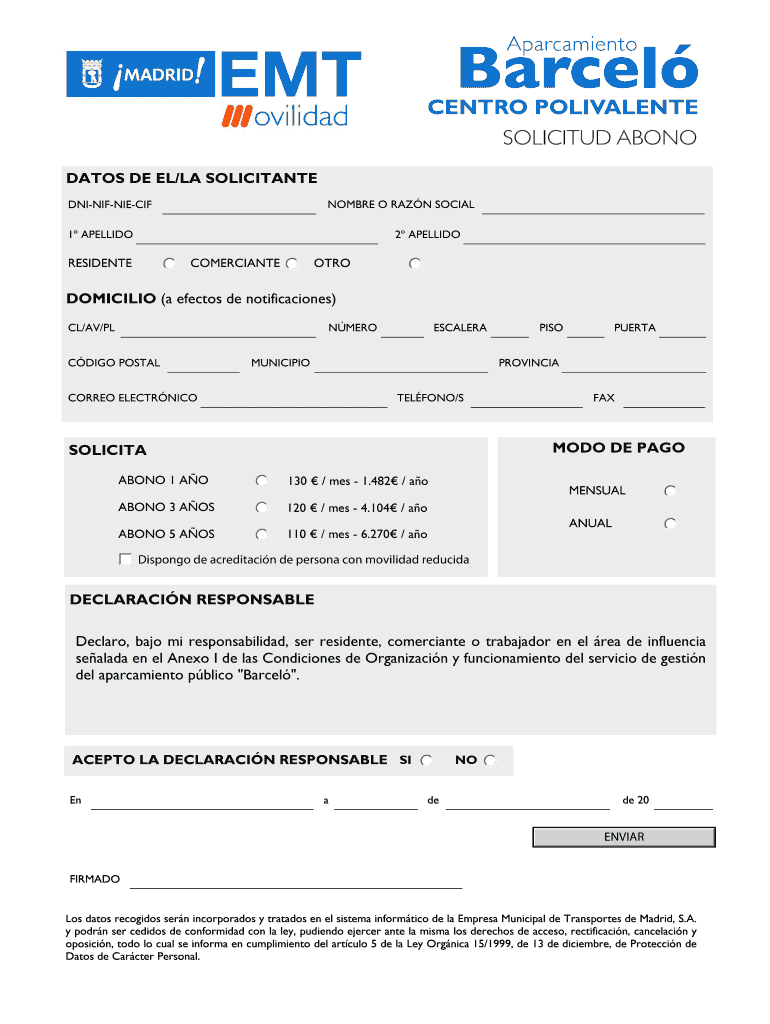 DATES DE EL/LA SOLICITING. DOMICILE (an effect DE notifications) SOLICIT. MOD ODE PAGO DECLARED N RESPONSIBLE. Declare, banjo mi responsabilidad, SER residents ...
