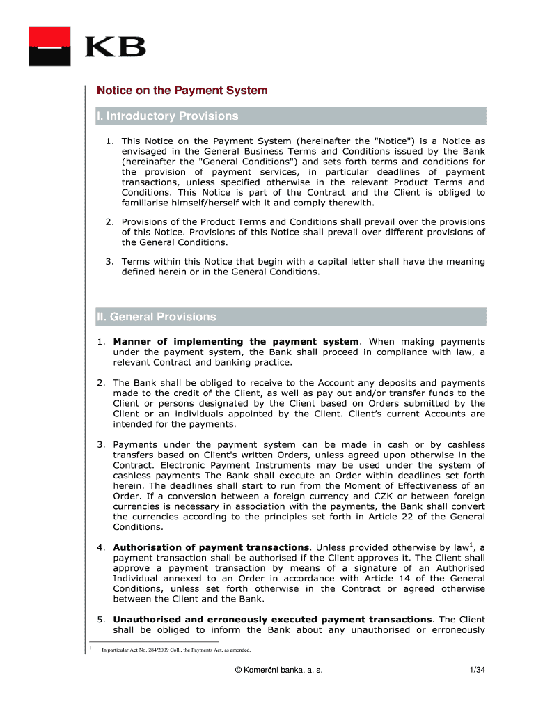 Get the free Notice on the Payment system (PDF file) - Komer?n banka