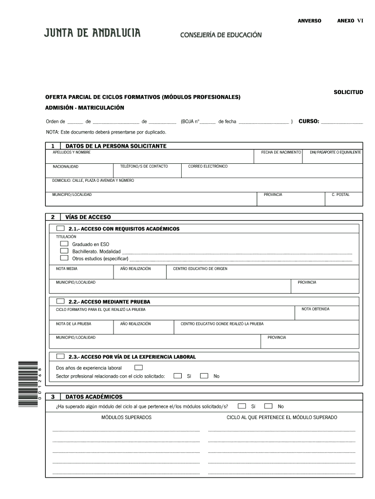 Get the free SOLICITUD OFERTA PARCIAL DE CICLOS FORMATIVOS MDULOS - iesalandalus