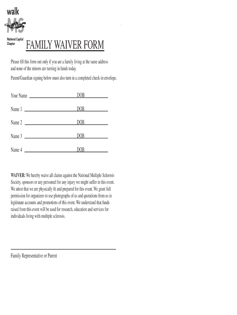 Get the free FAMILY WAIVER FORM FAMILY WAIVER FORM - walkdcw nationalmssociety
