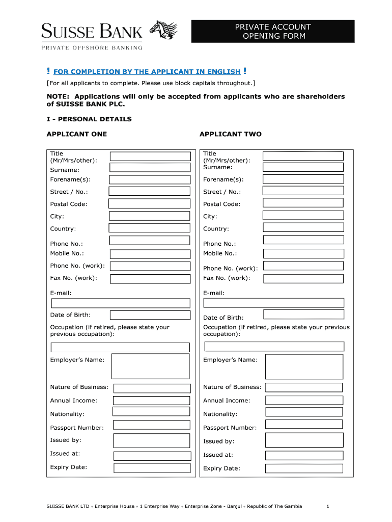 Get the free PRIVATE ACCOUNT OPENING FORM - suisse bank group