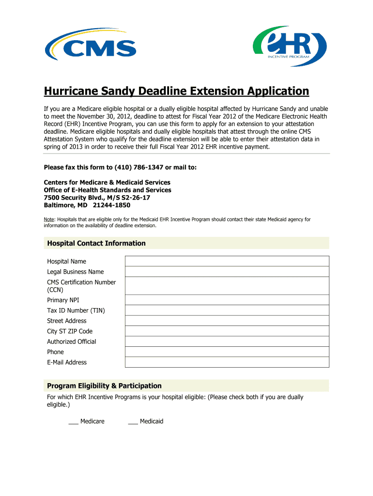 Get the free Hurricane Sandy Deadline Extension Application - Centers for - cms