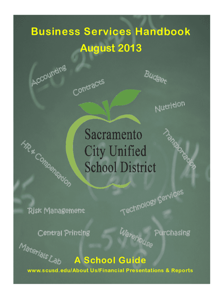 This document serves as a comprehensive guide detailing the policies, guidelines, and responsibilities related to business services within the Sacramento City Unified School District, including financial
