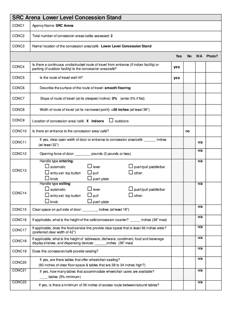 SRC Arena Lower Level Concession Stand CONC1 Agency Name: SRC Arena CONC2 Total number of concession areas/cars assessed: 2 CONC3 Name/ location of the concession area/CAF: Lower Level Concession