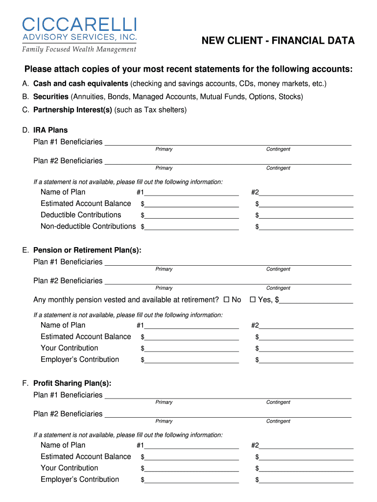 Get the free New client - financial data - Ciccarelli Advisory Services