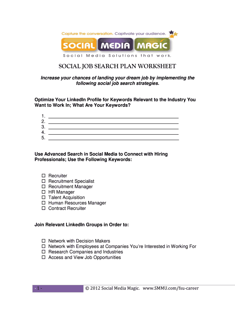 Get the free SOCIAL JOB SEARCH PLAN WORKSHEET - SMMU