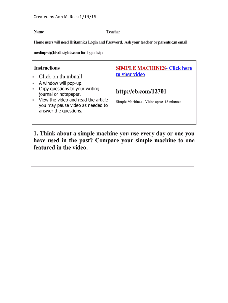 Created by Ann M. Sees 1/19/15 Answer these questions from the article. 4. The most basic machines are called simple machines. They