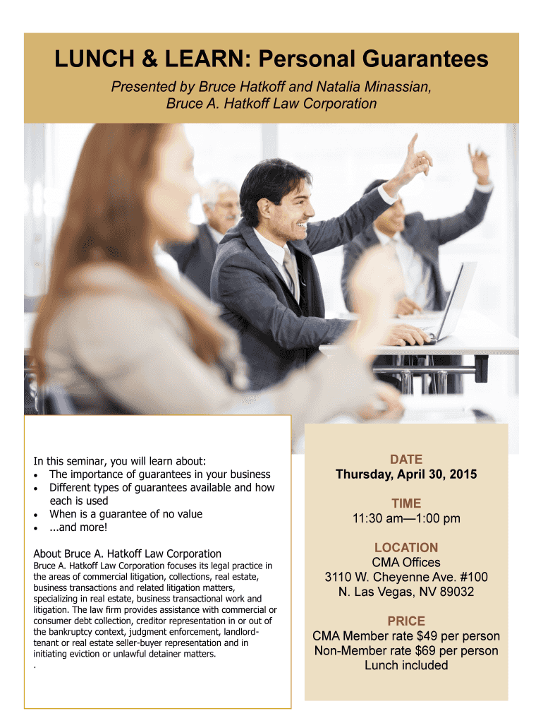 Get the free LUNCH amp LEARN Personal Guarantees - banscersbbcomb