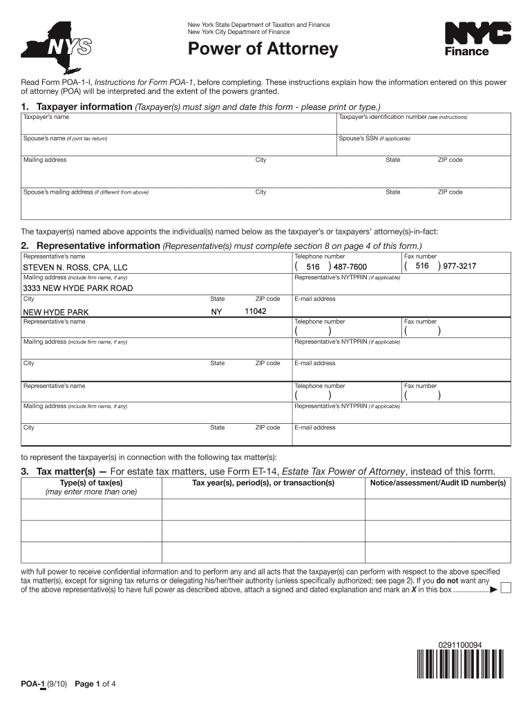 Get the free New York State Power of Attorney - Individuals - Steven N. Ross ...