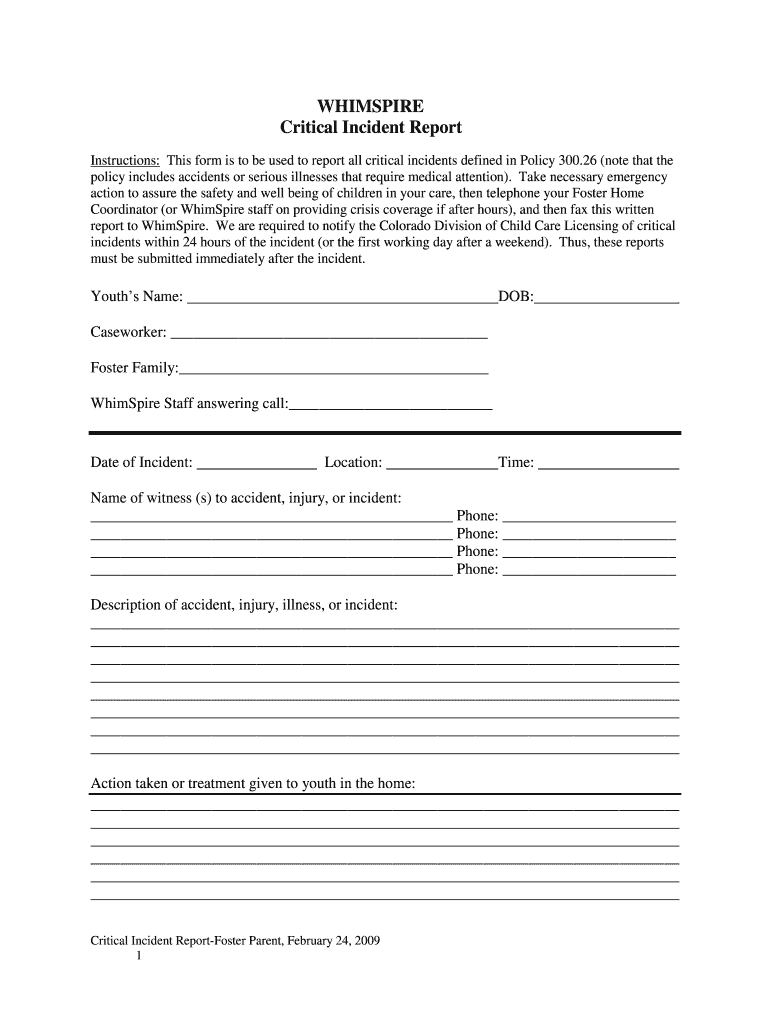 Bwhimspireb Critical Incident Report is not the form you're looking for?Search for another form here.