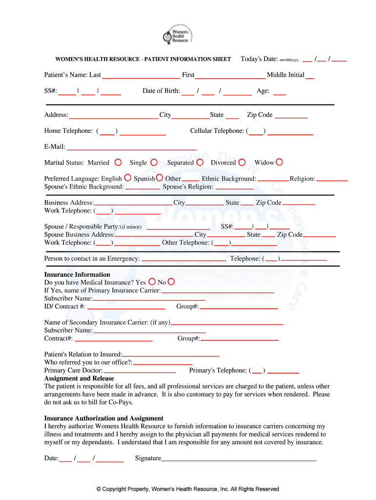 Get the free WHRPatientInfoFormdoc - wbobgyn