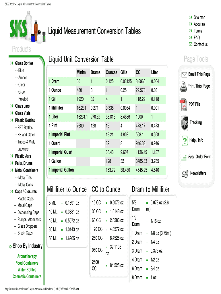 ASKS Bottle Liquid Measurement Conversion Zálesíite map About us Terms FAQ Contact liquid Measurement Conversion Tables Products Glass Bottles Blue Amber Clear Green Frosted Glass Jars Glass Vials