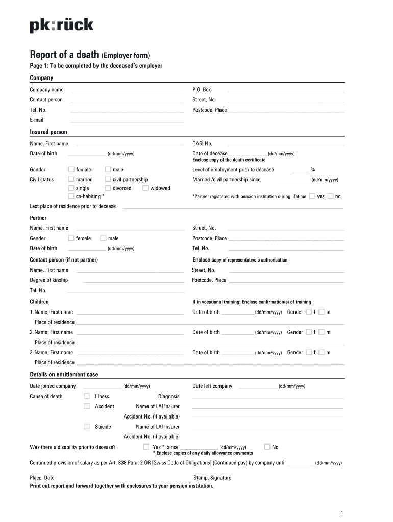 Get the free 1 Report of a death (Employer form) Page 1: To be completed by the deceased s employ...