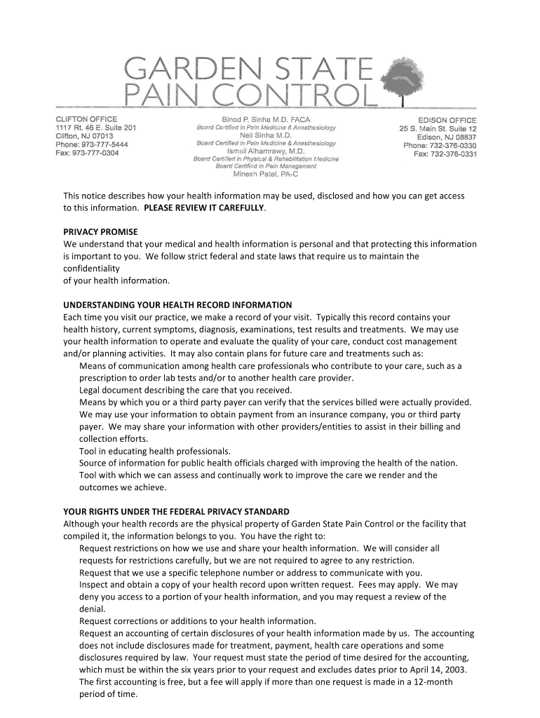 NOTICE OF PRIVACY PRACTICES This notice describes how your health information may be used, disclosed and how you can get access to this information. PLEASE REVIEW IT CAREFULLY. PRIVACY PROMISE We