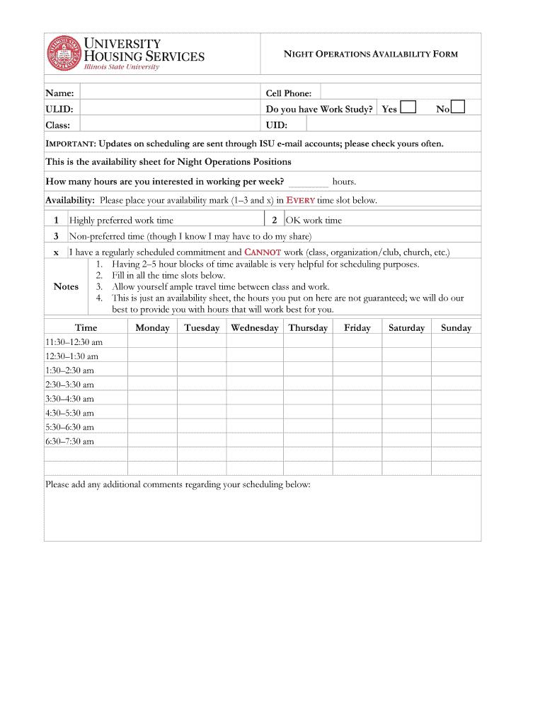 Get the free Name: ULID: Do you have Work Study? Yes No Class: UID: This is ... - housing illinoi...