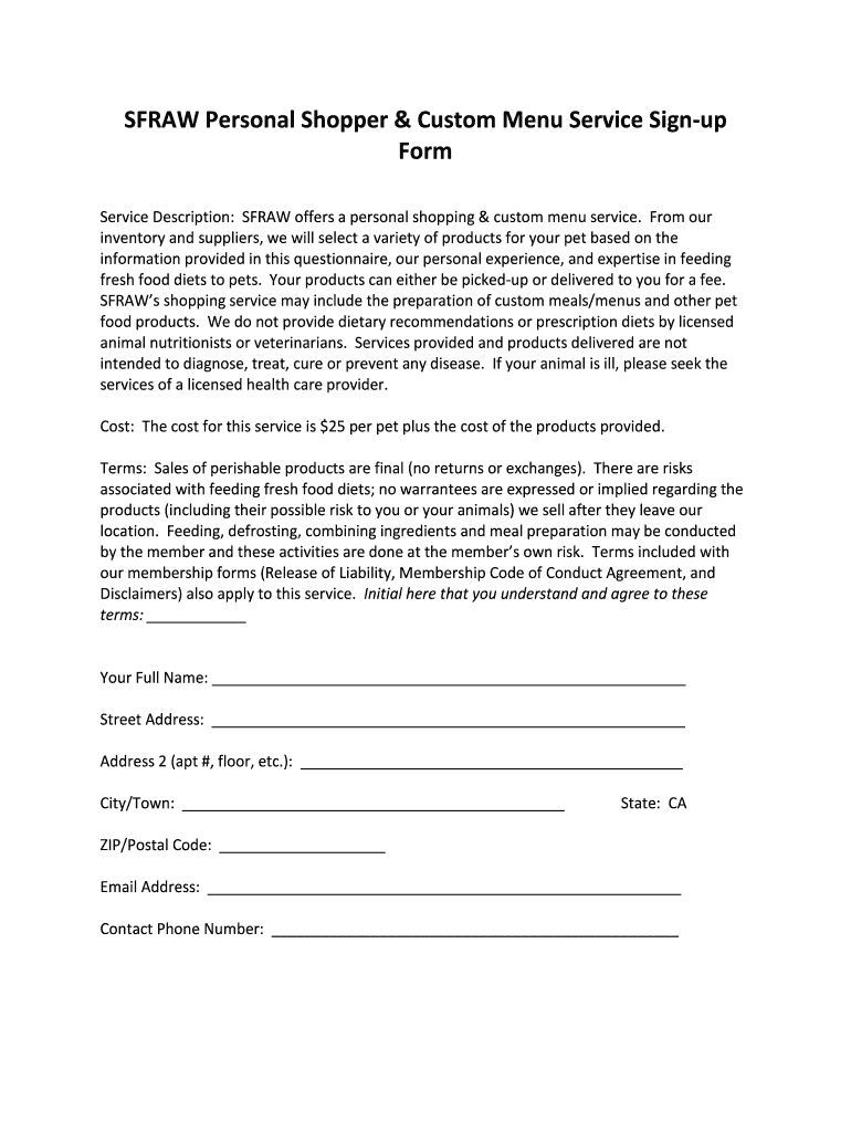 STRAW Personal Shopper & Custom Menu Service Sign up Form Service Description: STRAW offers a personal shopping & custom menu service. From our inventory and suppliers, we will select a variety of