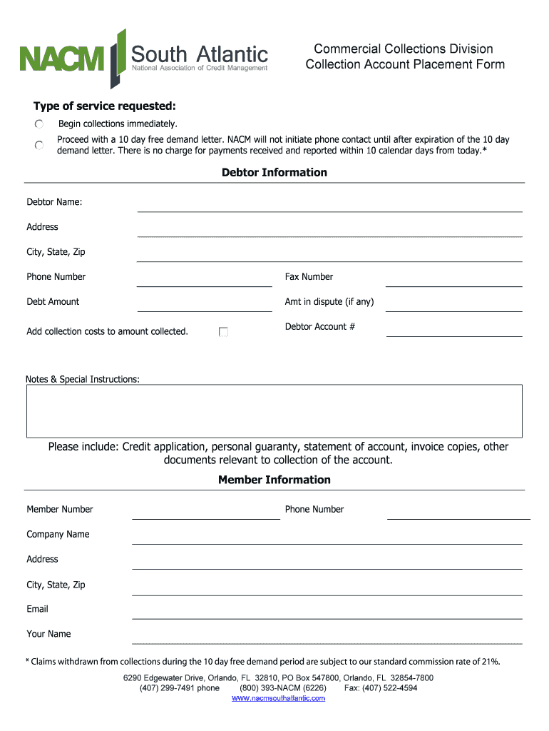 Get the free NACM South Atlantic Collection Account Placement NACM South Atlantic Commercial Coll...