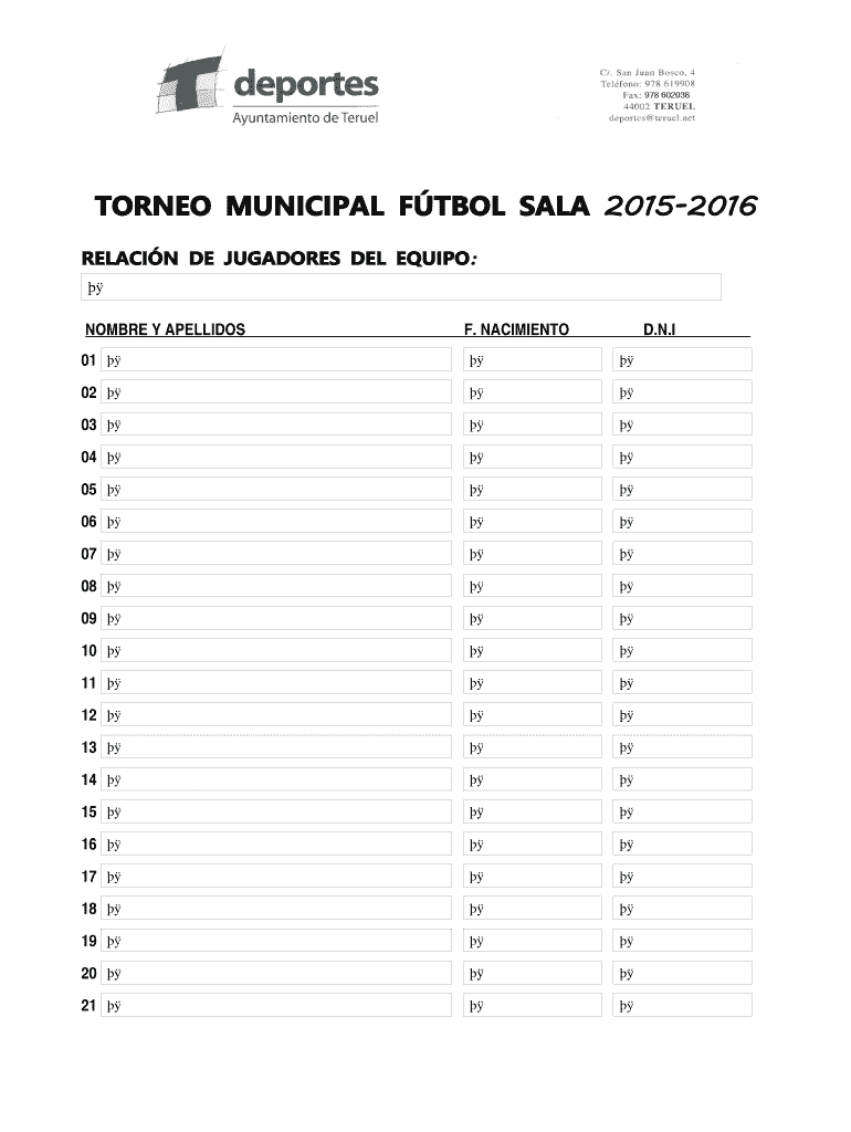 All teams or participants taking part in the tournament are required to file torneo municipal baloncesto 2.