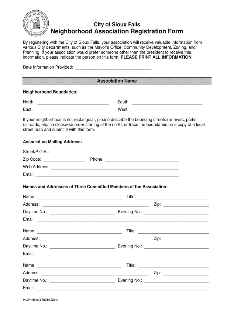 Get the free Neighborhood bAssociationb Registration bFormb - City of Sioux Falls - siouxfalls