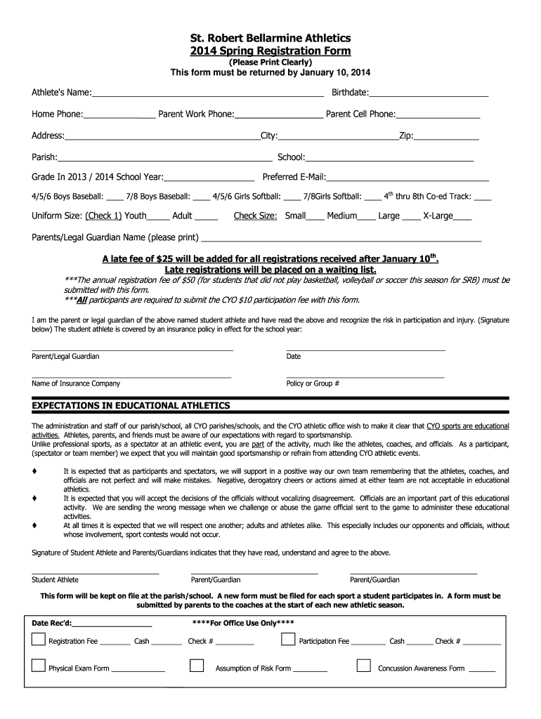 Get the free Spring Sports Registration Form - St. Robert Bellarmine