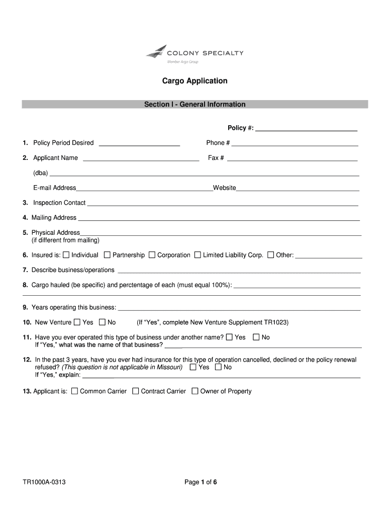 How to fill out the cargo insurance application form