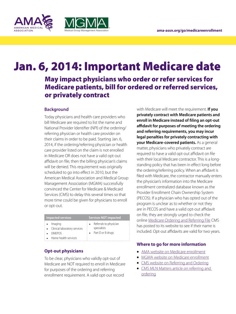 Amaassn.org/go/medicareenrollmentJan. 6, 2014: Important Medicare date