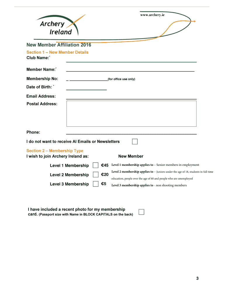 Get the free New Member Affiliation Form 2016 Completing Your Form