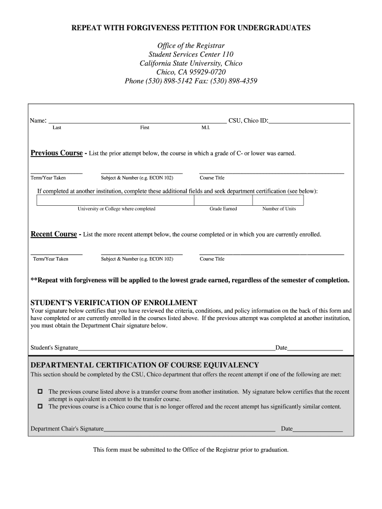 Get the free REPEAT WITH FORGIVENESS POLICY ... - CSU, Chico - csuchico