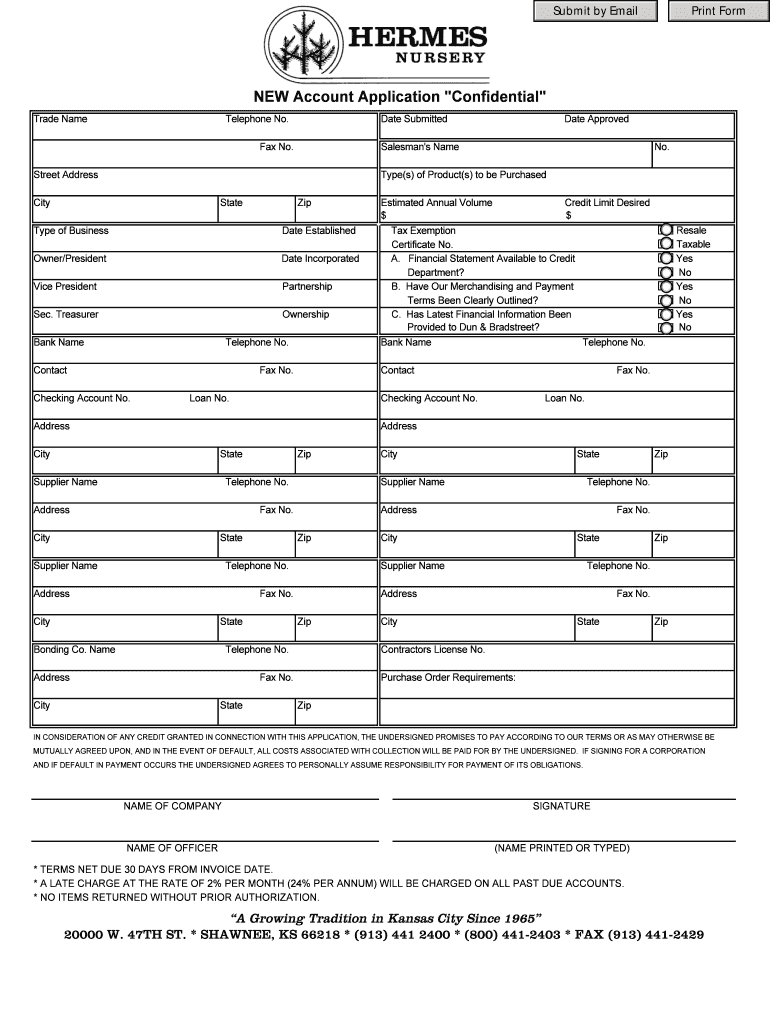 Get the free NEW Account Application Confidential - Hermes Nursery
