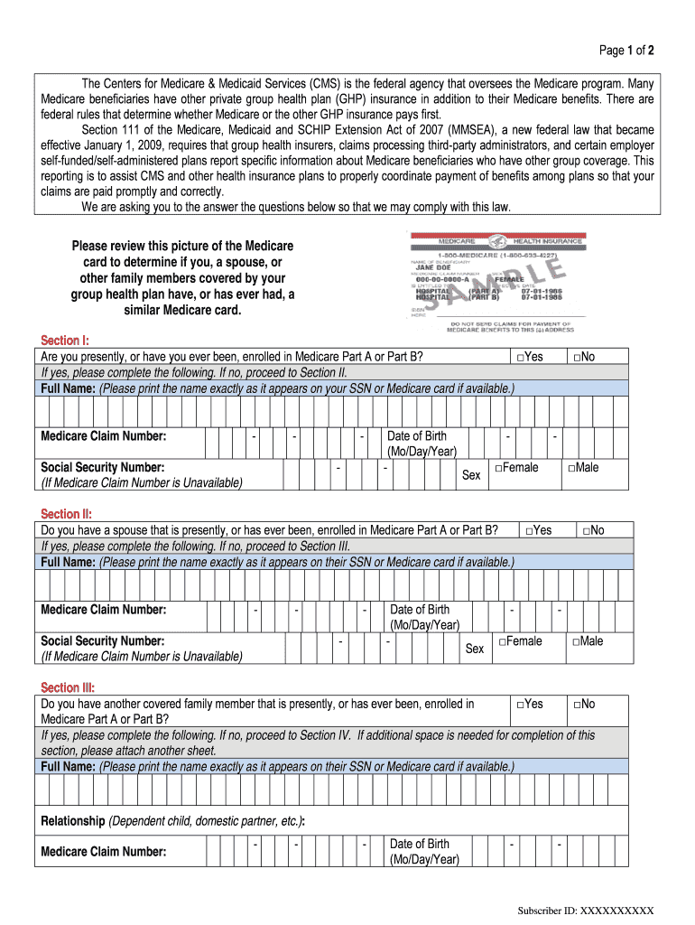 Individuals who are enrolled in Medicare or covered under a group health plan, including family members, are eligible to complete the Medicare Beneficiary Information Form.