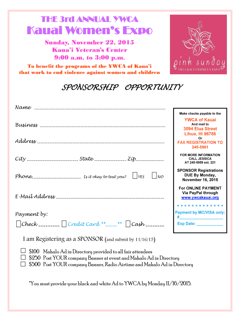 Get the free Sponsorship Form - YWCA of Kauai - ywcakauai
