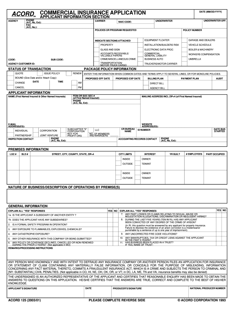Businesses, organizations, and individuals who operate in commercial industries are required to file a commercial insurance application.