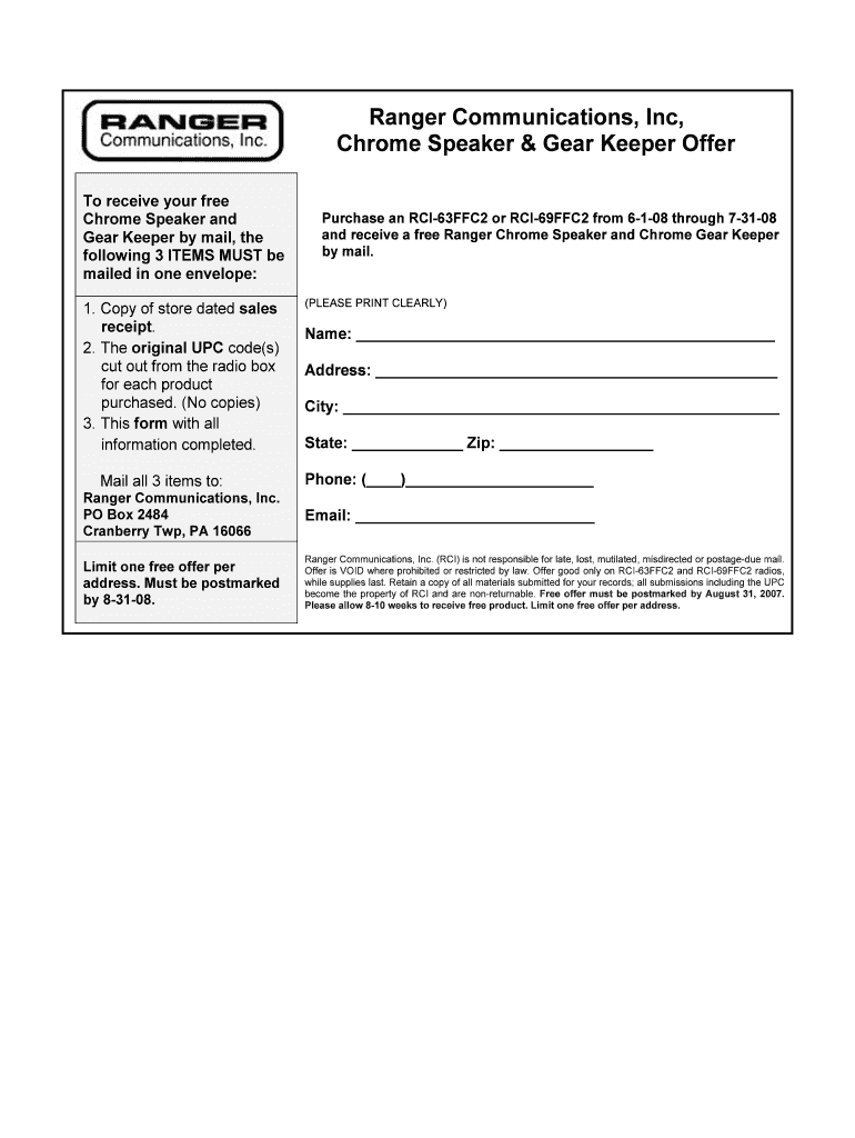 Ranger Communications, Inc, Chrome Speaker & Gear Keeper Offer To receive your free Chrome Speaker and Gear Keeper by mail, the following 3 ITEMS MUST be mailed in one envelope: 1. Copy of store dated