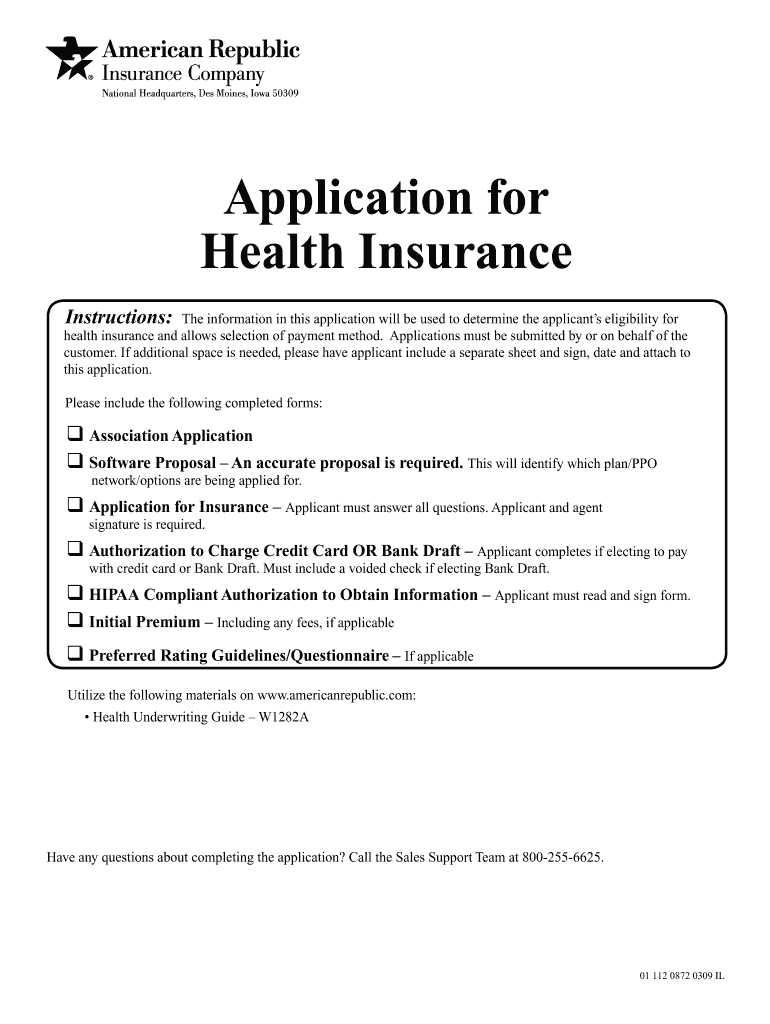 Submission Methods and Delivery Options for the Health Insurance Application Form