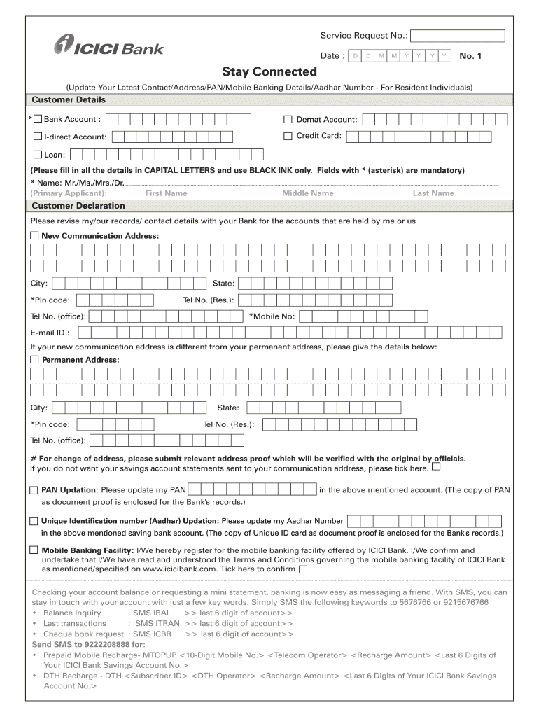 10.Finally, if required, submit the completed form through the appropriate ICICI Bank channel, or print it out for physical submission.
