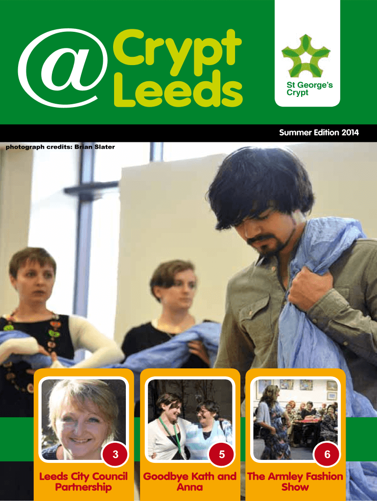Crypt Leeds St Georges Crypt Summer Edition 2014 photograph credits: Brian Slater 3 Leeds City Council Partnership 5 6 World Buffet Visit Nurture Fashion Goodbye Kath and The Armlet News Anna Show