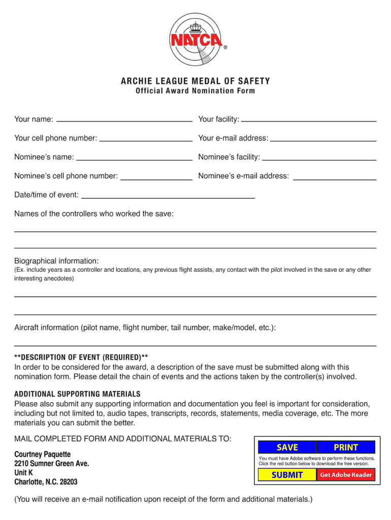 Get the free Archie nomination form.eps - Natca Members