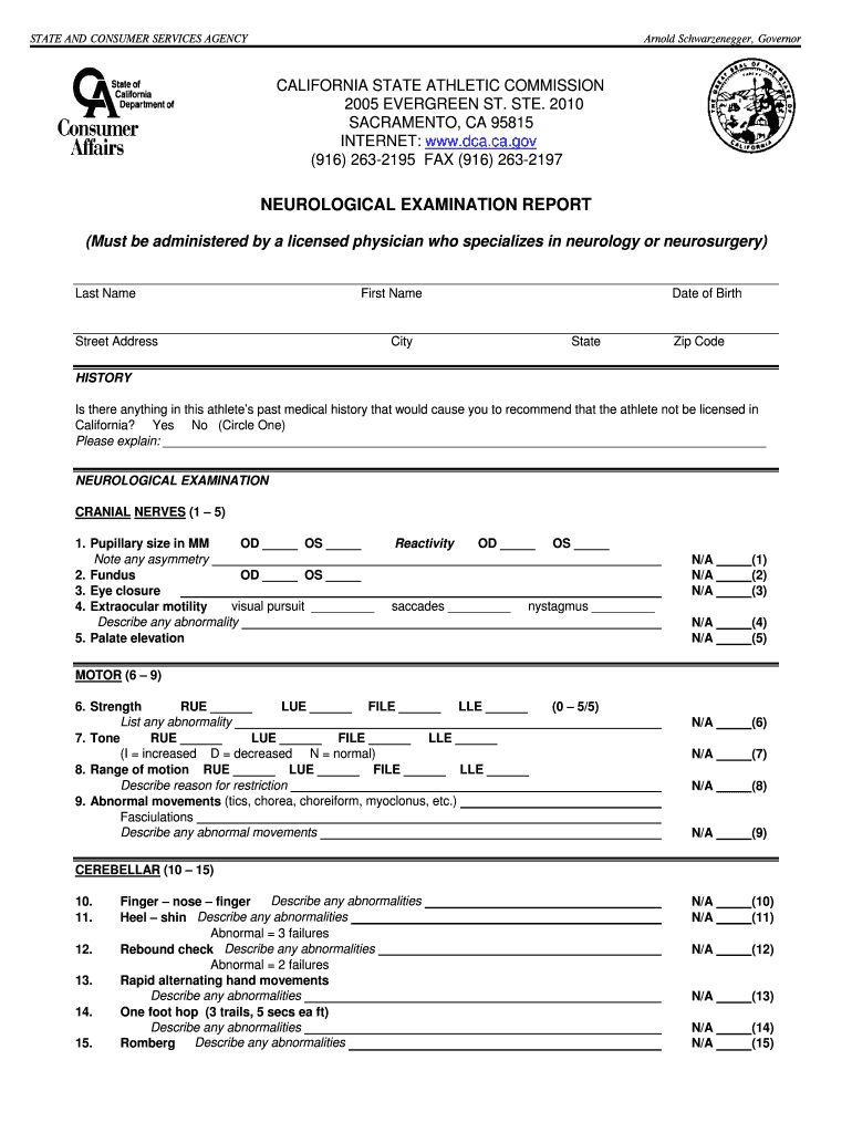 Get the free NEUROLOGICAL EXAMINATION REPORT - bSoCalMDSb