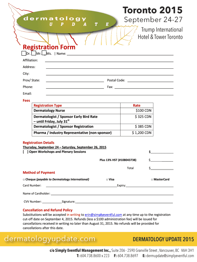 Get the free Registration Form - Dermatology Update