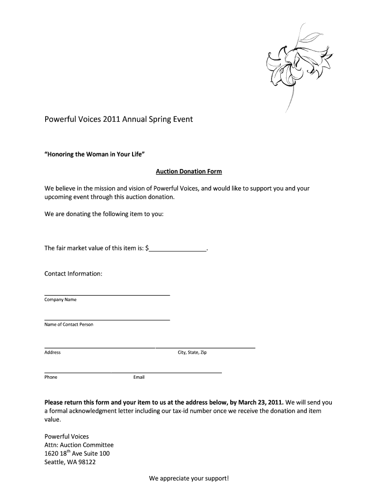 Powerful Voices 2011 Annual Spring Event Honoring the Woman in Your Life Auction Donation Form We believe in the mission and vision of Powerful Voices, and would like to support you and your upcoming